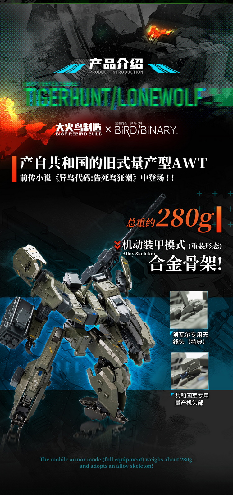 产品名称:大火鸟玩具 BV-01 异鸟代码 夜战型 猎虎者 TYPE-N