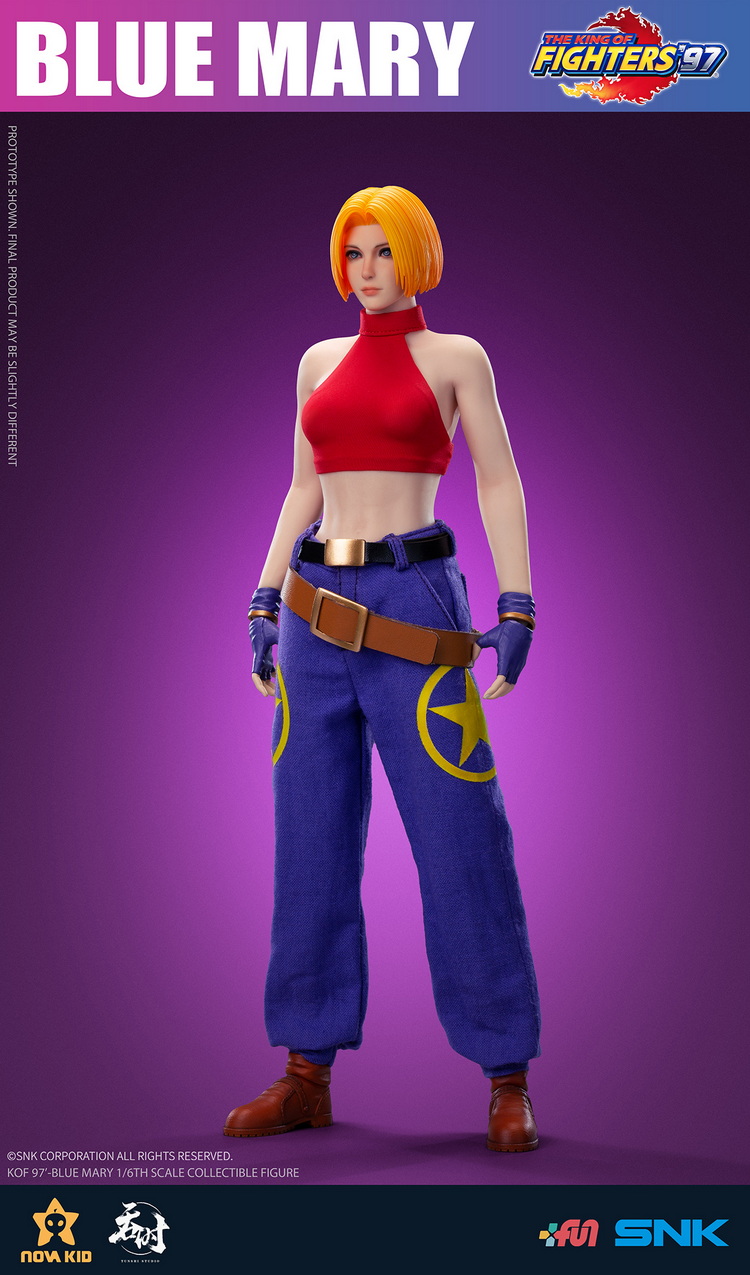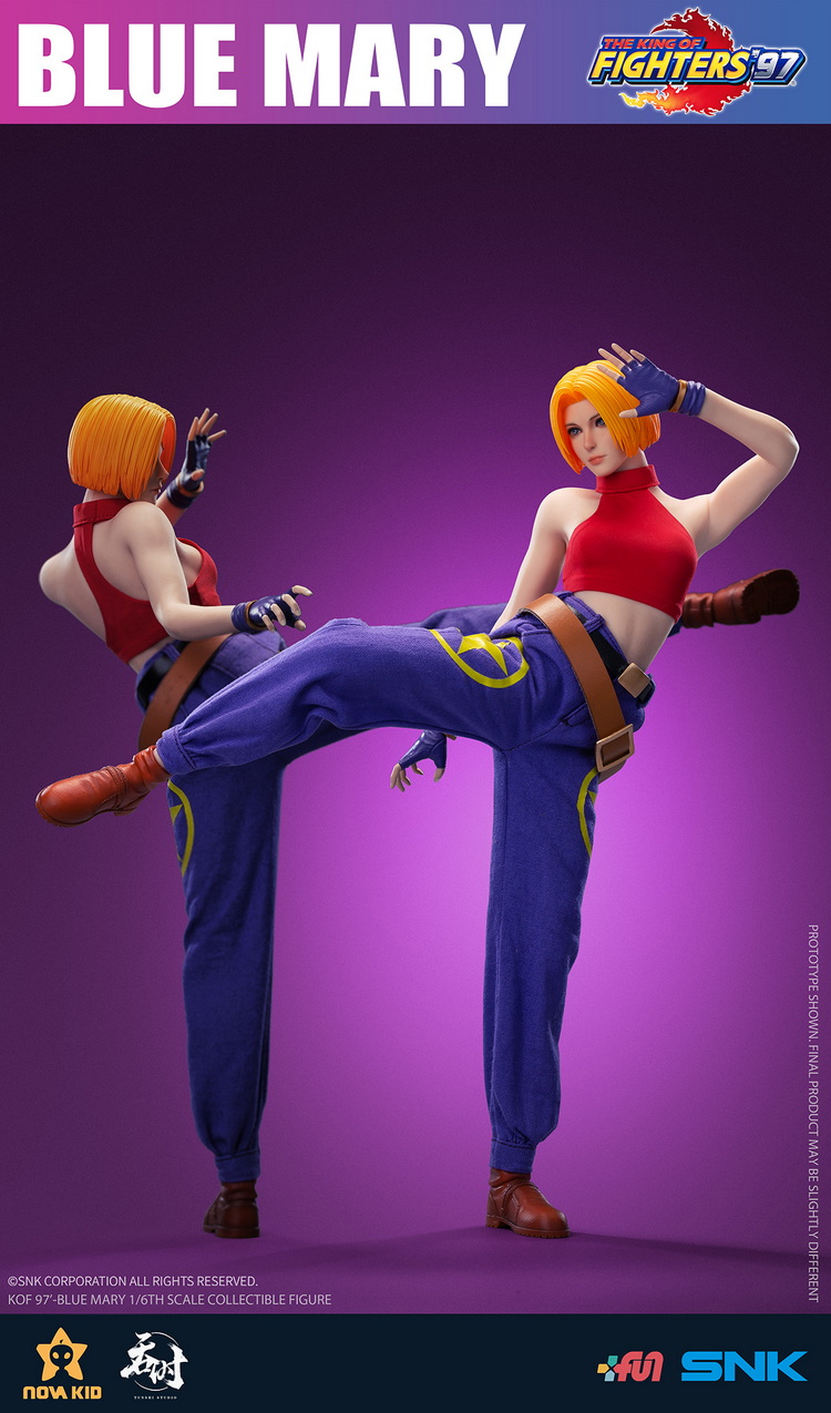 系列首推《拳皇’97》中三大女神之一布鲁·玛丽。金色短发,身材健美,布鲁·玛丽格斗技出众,尤其擅长以投技和关节打击的擒拿技。配合特选包胶素体,玩家可随意还原女神格斗经典动作。