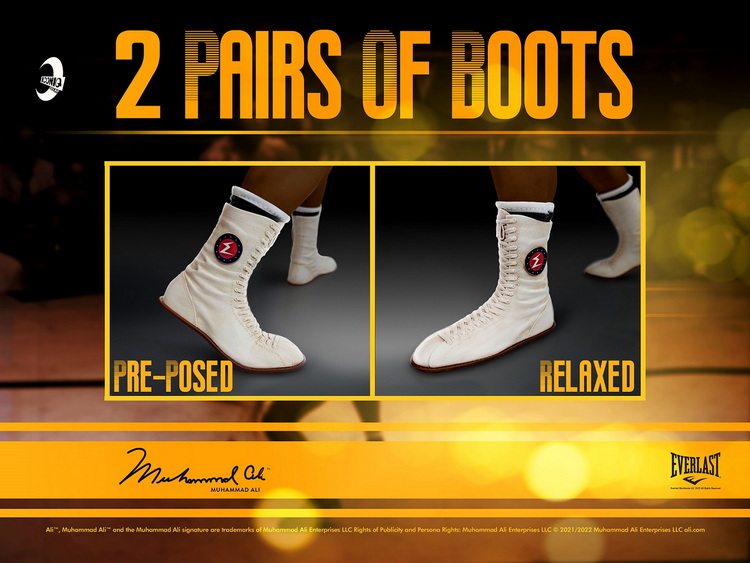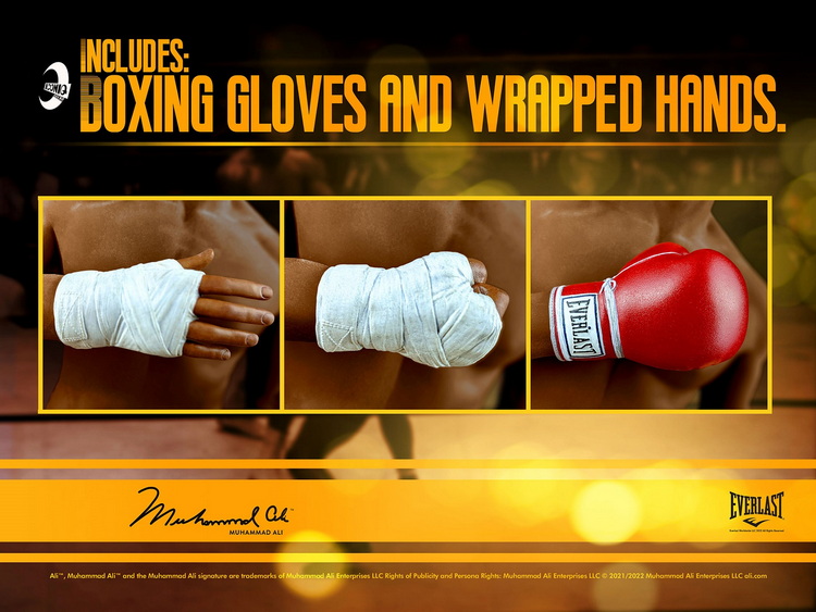 採用全新開發TBLEAGUE 無縫素體 為匹配阿里自己的體格量身定制的,並且能夠重現他的標誌性 戰鬥風格。該人物包括一個真實的手工雕刻頭部,捕捉了最偉大的拳手 在激烈的戰鬥中的表情