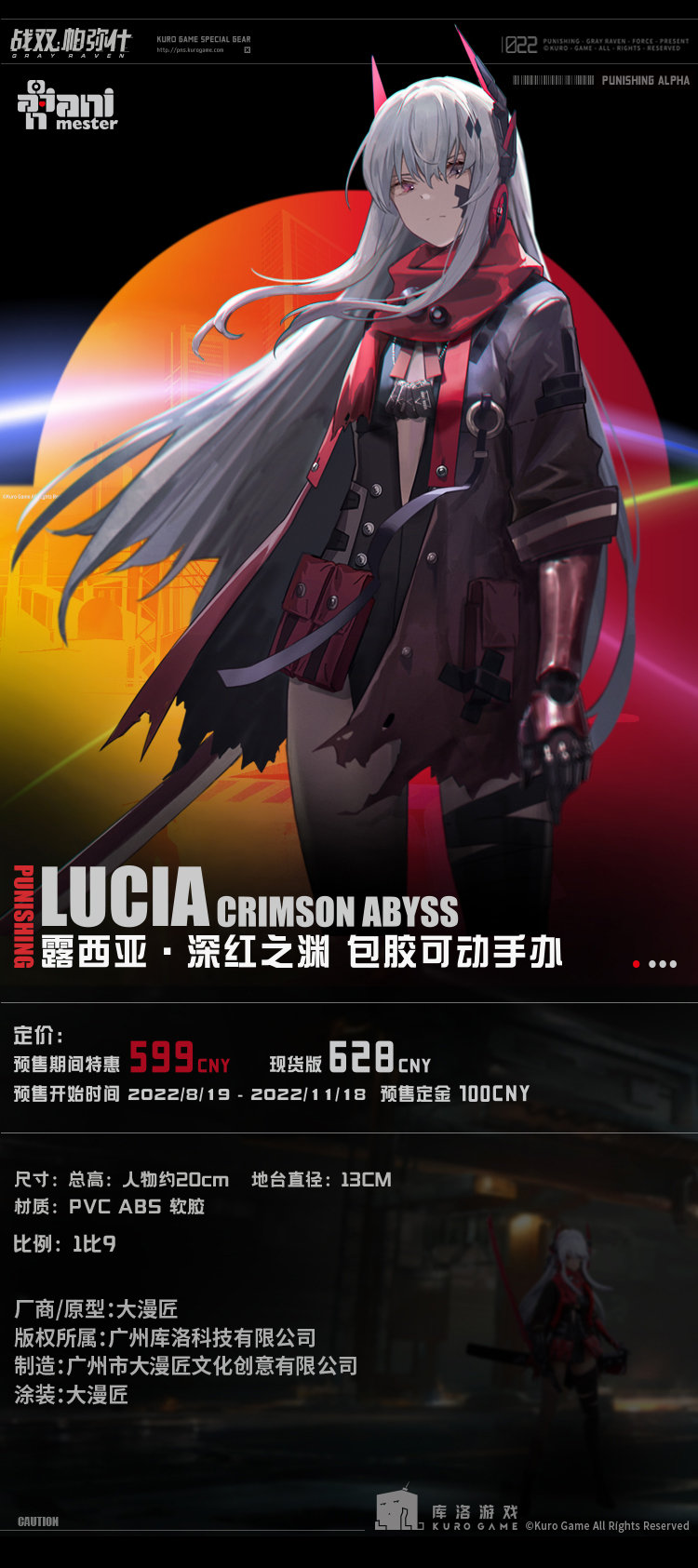 新品名称:战双帕弥什 露西亚·深红之渊 1/9 包胶可动手办