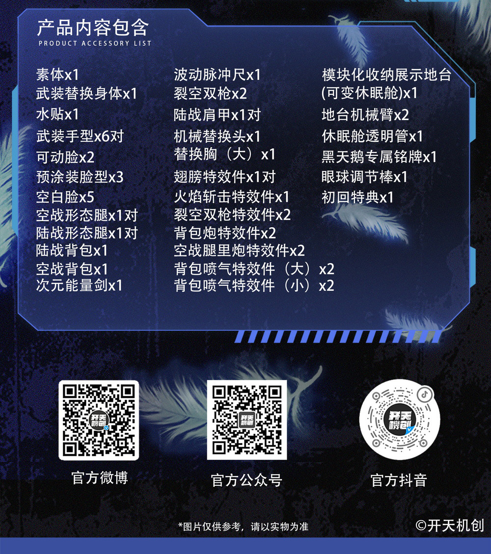 翅膀特效件x1对 火焰斩击特效件x1  裂空双枪特效件x2  背包炮特效件x2