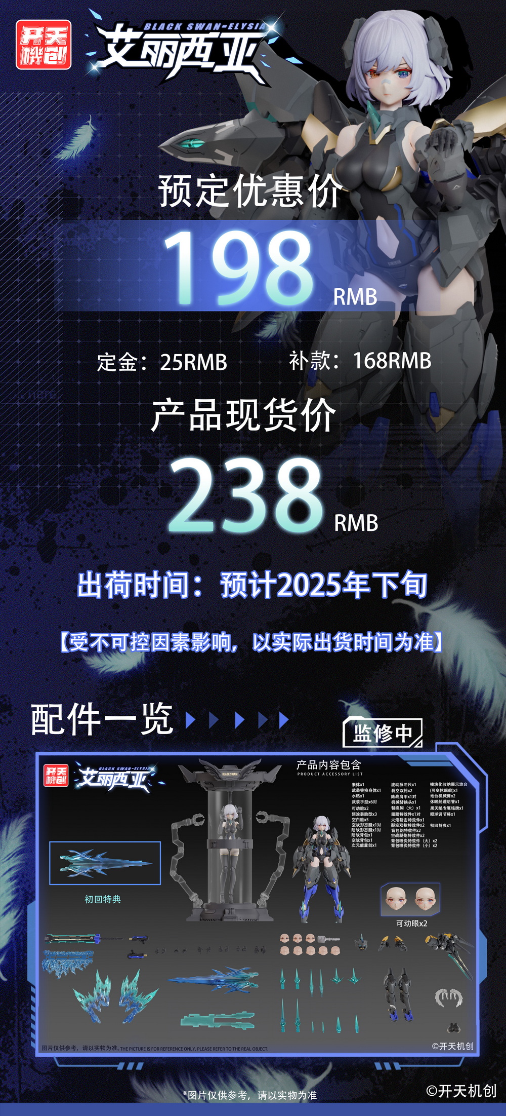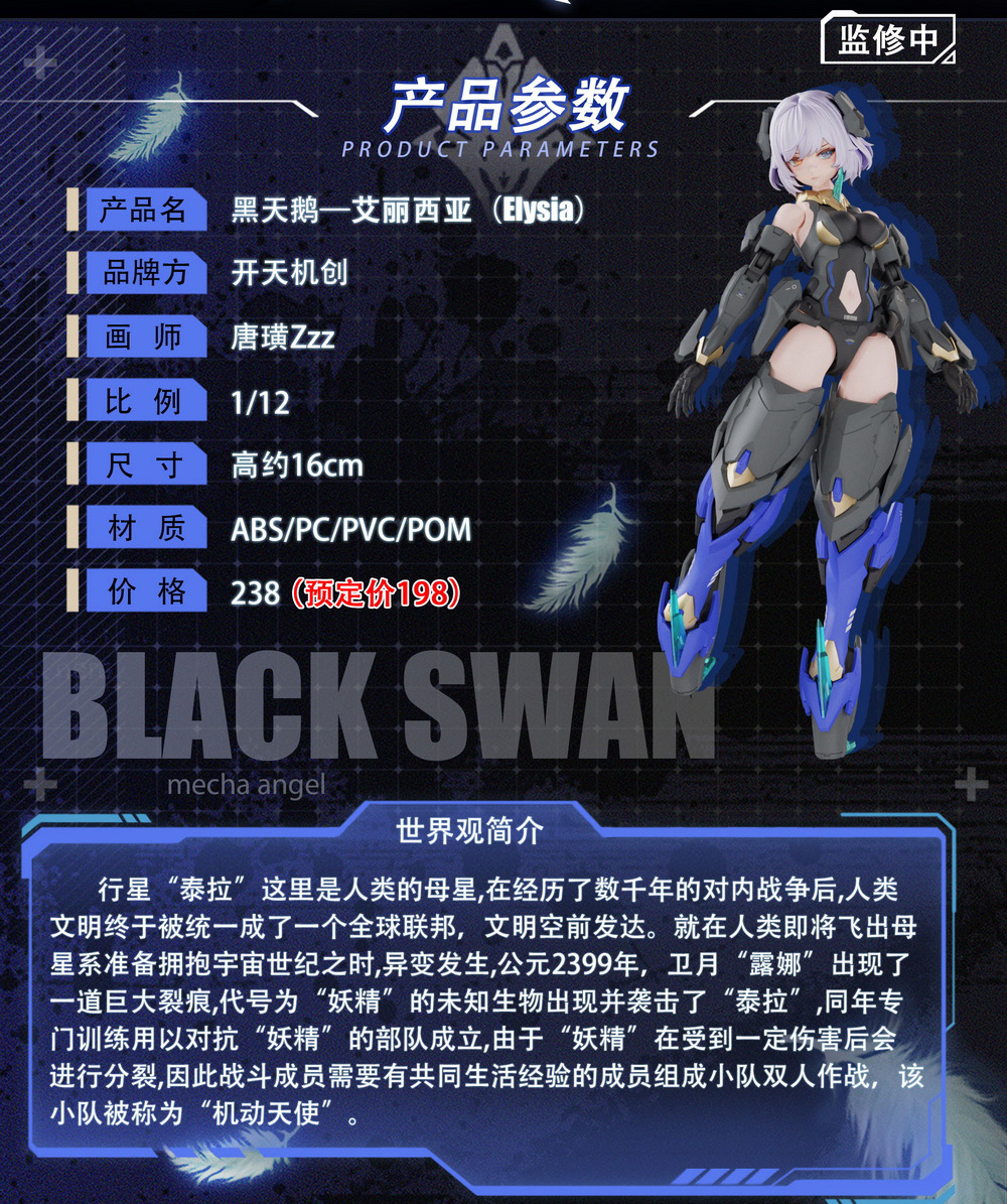 产品名称 :开天机创—机动天使系列:黑天鹅 艾丽西亚 1/12拼装机娘