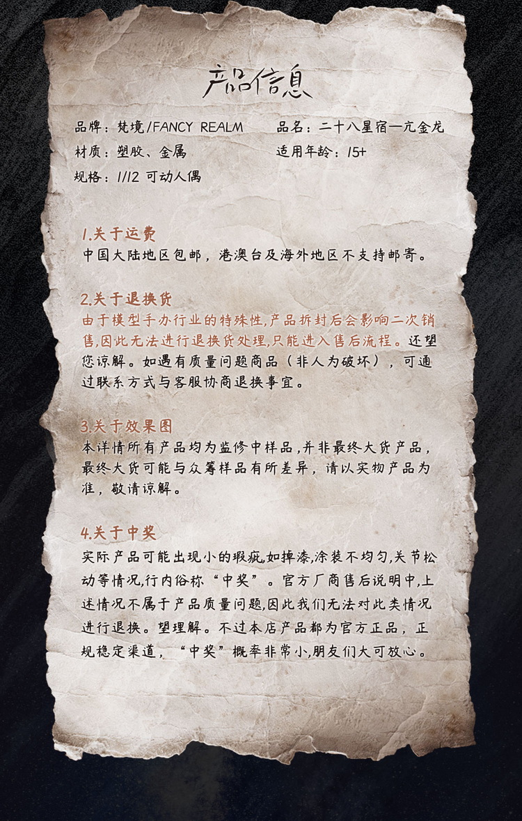 产品名称:梵境 Fancy Realm FJ-1B01 1/12 二十八星宿 亢金龙