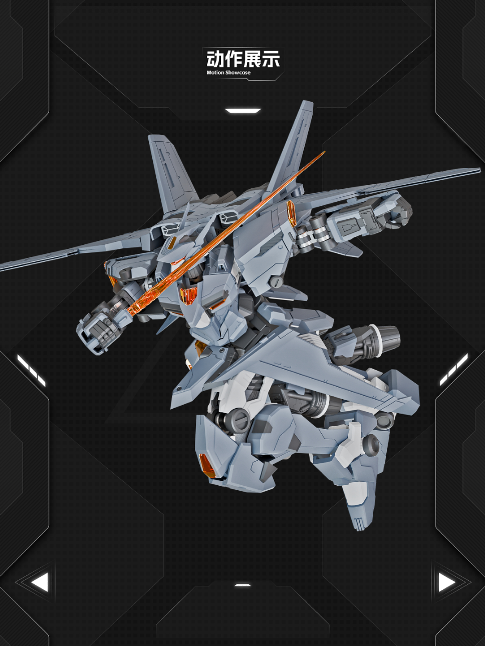 穹胜-机甲本体X1,导弹×2,地台X1,坐姿小人x1,射手步枪x1,站姿小人x1,突击步枪x2,武器挂架x3,光束剑×1,水贴纸x1,磁控灯及电池X1。
