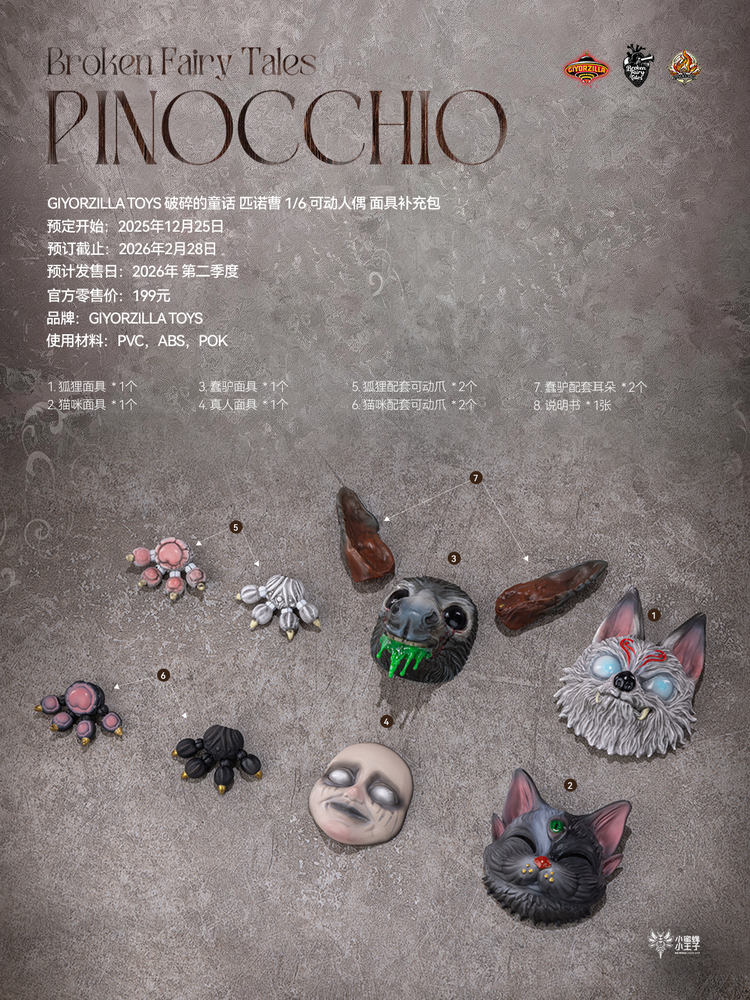产品全称:GIYORZILLA TOYS 破碎的童话 匹诺曹 1/6 可动人偶 面具补充包