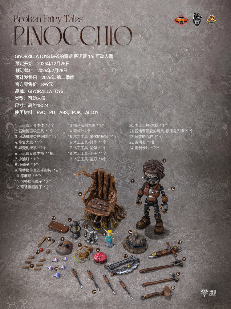 产品全称:GIYORZILLA TOYS 破碎的童话 匹诺曹 1/6 可动人偶