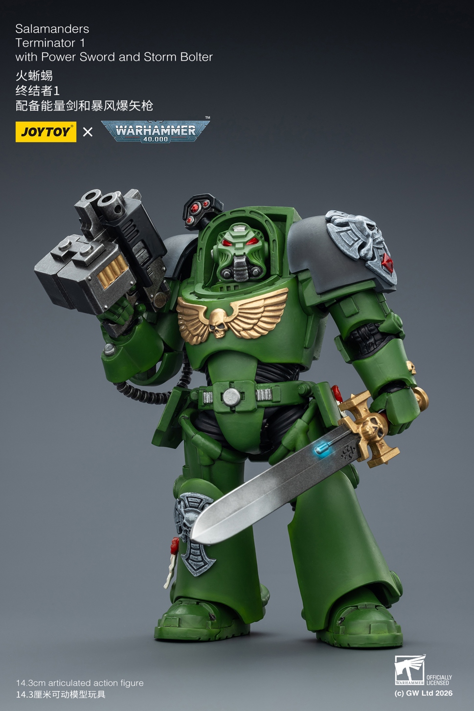 产品名称:暗源 JT03219 1/18 战锤40K 火蜥蜴 终结者1 配备能量剑和暴风爆矢枪