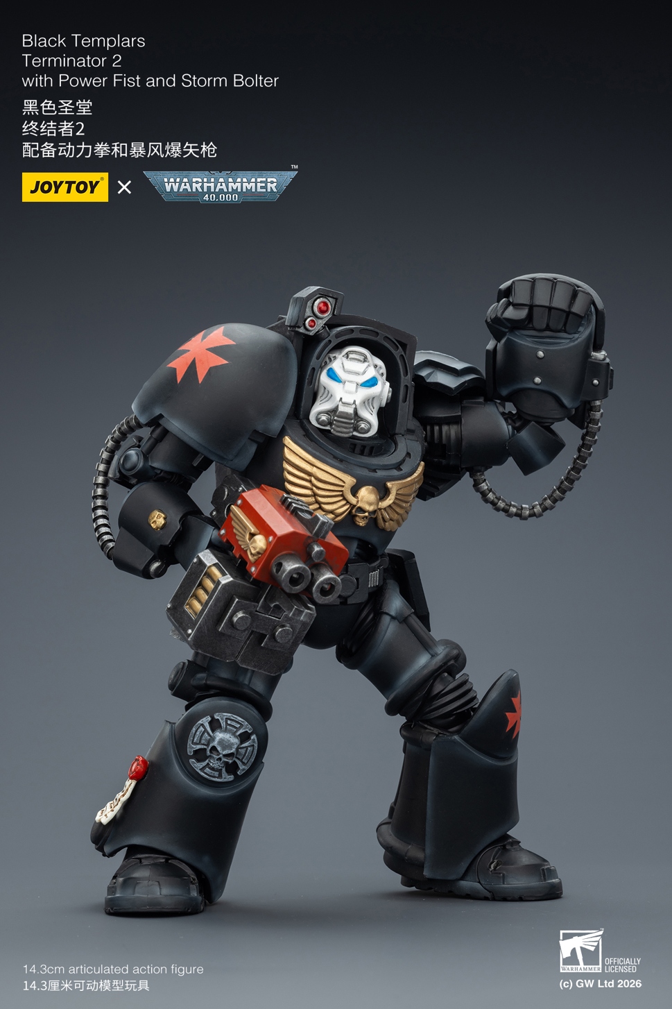 产品名称:暗源 JT03110 1/18 战锤40K 黑色圣堂 黑色圣堂 终结者3 配备动力拳和突击炮