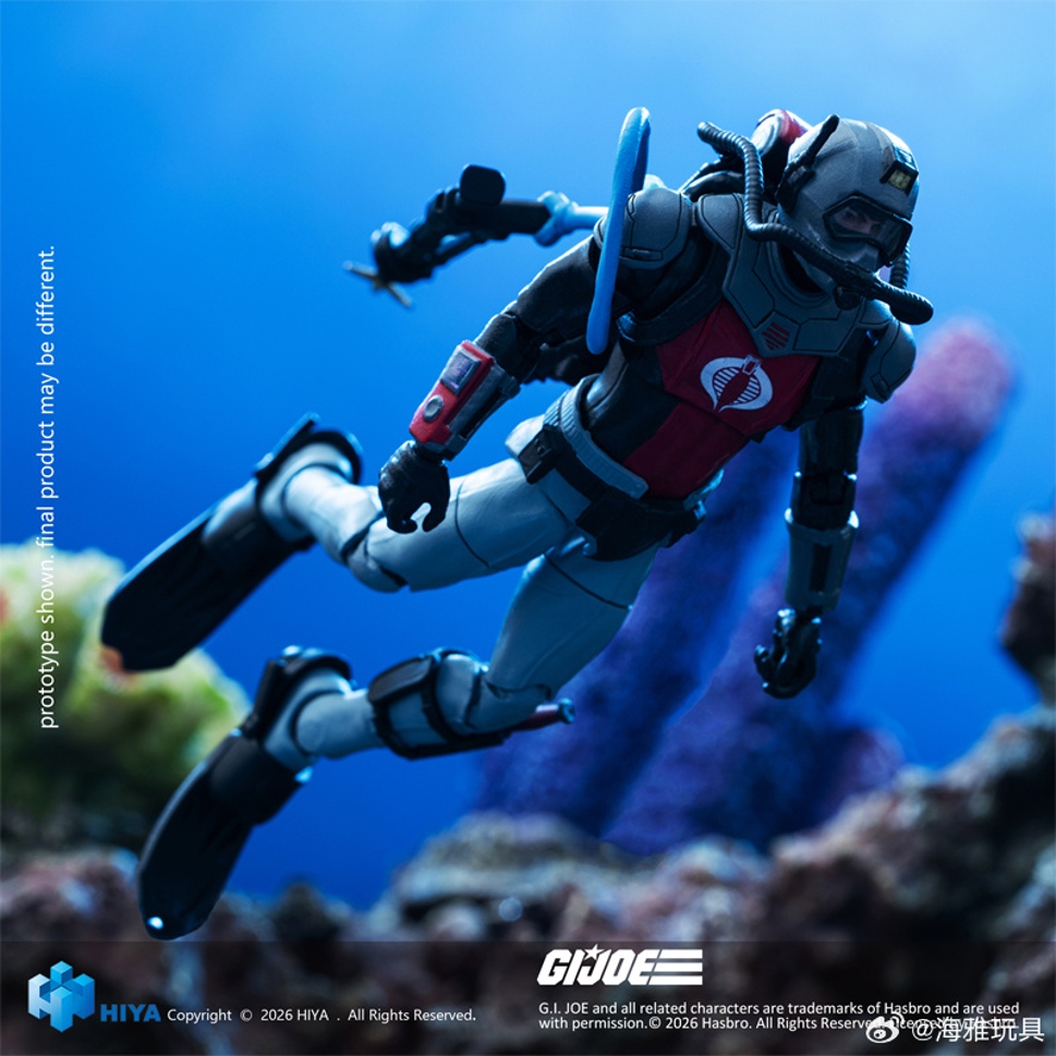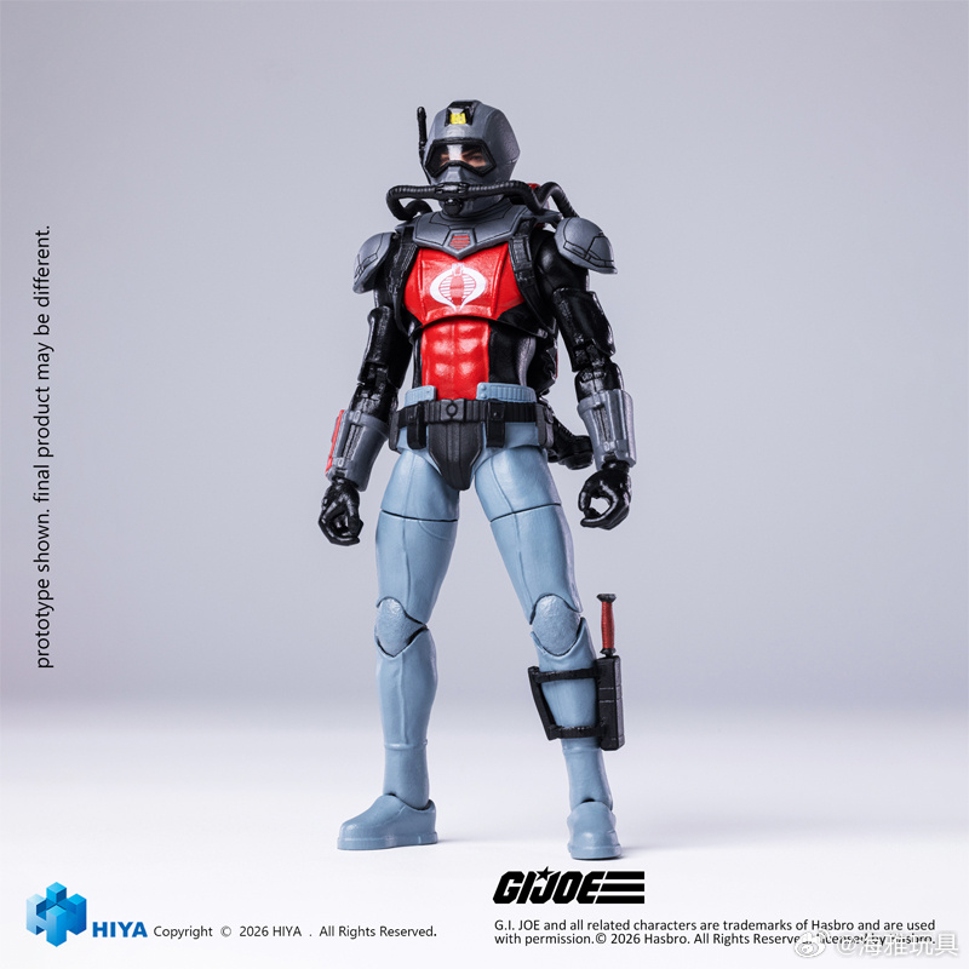 本款全新EXQUISITE MINI 系列 G.I.Joe 毒鳗 可动人偶全高约 10.5CM,以经典 G.I.Joe特种部队中毒鳗外观设定为基础进行打造。整体配色以红黑战斗潜水服配色呈现,胸前白色眼镜蛇标志清晰醒目。封闭式潜水头盔搭配贴身水下装甲,突出毒鳗作为专业水下突击兵的形象定位。