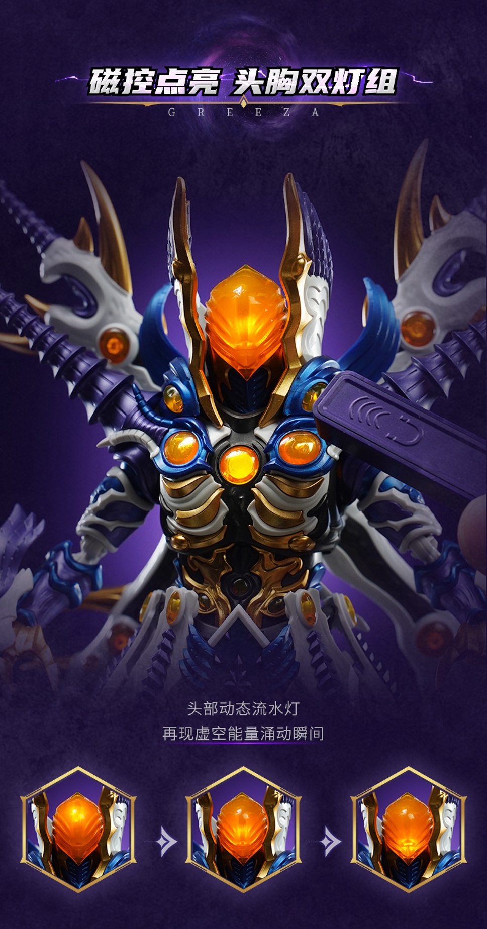 头胸磁控发光:头部动态流水灯,一秒切换战斗状态