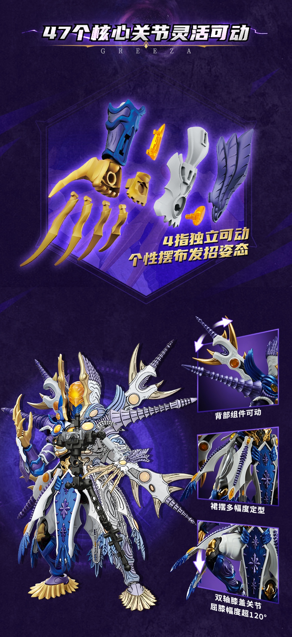 多处灵活可动:全身47处核心关节可动,手部四指可动